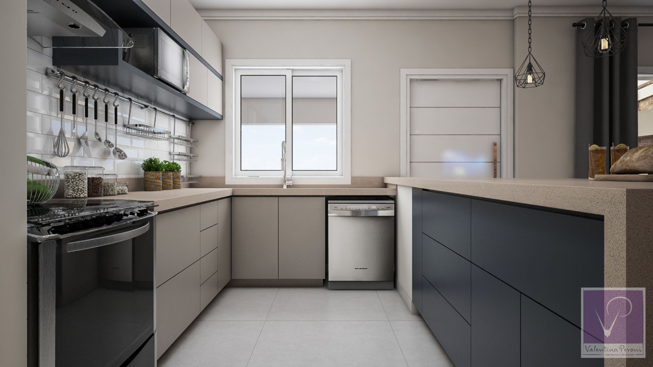 Eliminamos algumas paredes para integração da sala com a cozinha.